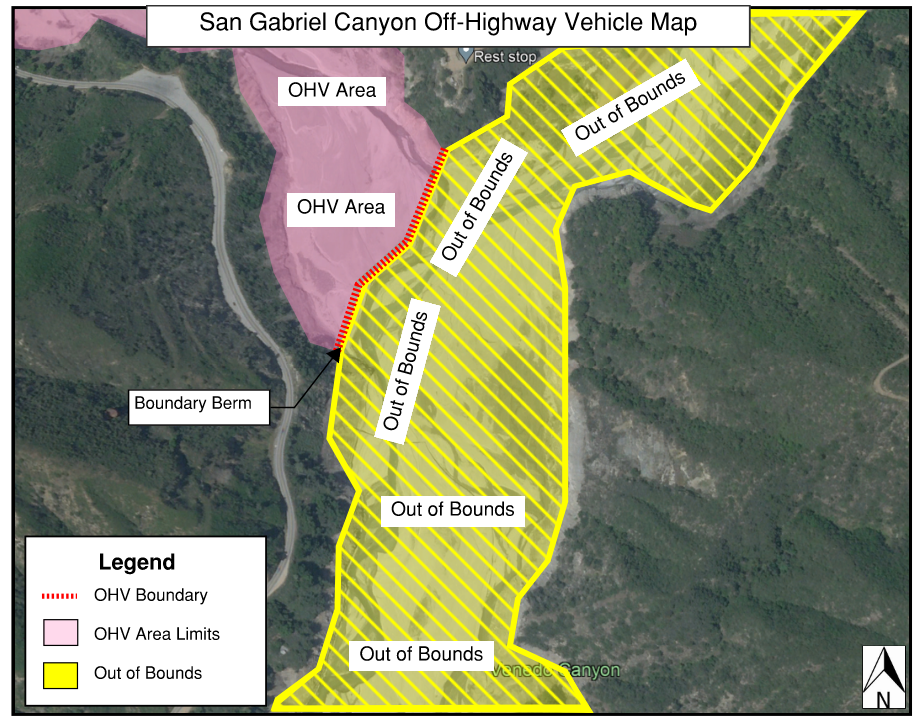 OHV users are reminded that entrance into San Gabriel Reservoir is prohibited. Due to the upcoming San Gabriel Reservoir Post-Fire Emergency Restoration Project, construction equipment and/or activities may be located within the OHV area. OHV users must respect all signs and fencing and avoid areas with construction equipment and/or activities.