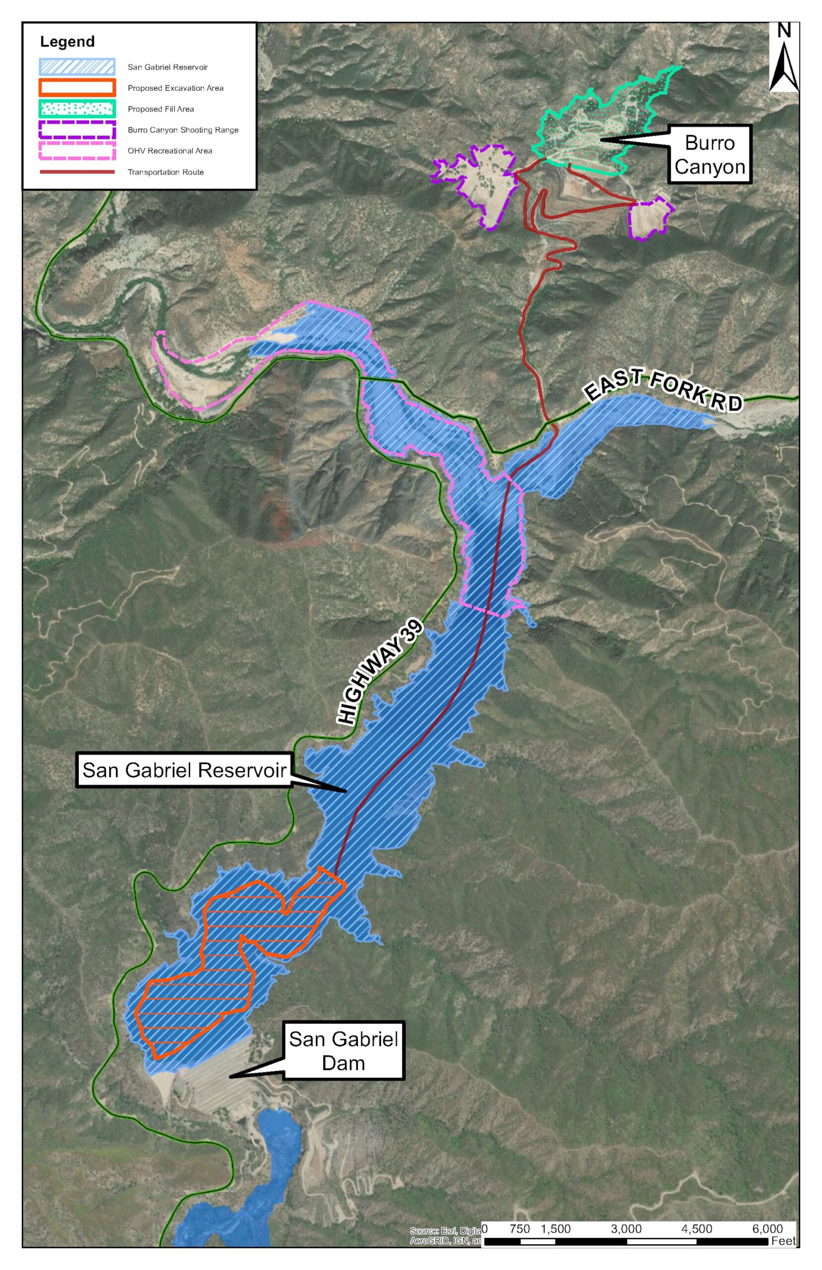 The access ramp will connect the reservoir to Burro Canyon Sediment Placement Site (SPS). The access ramp will not interfere with the East Fork Road.